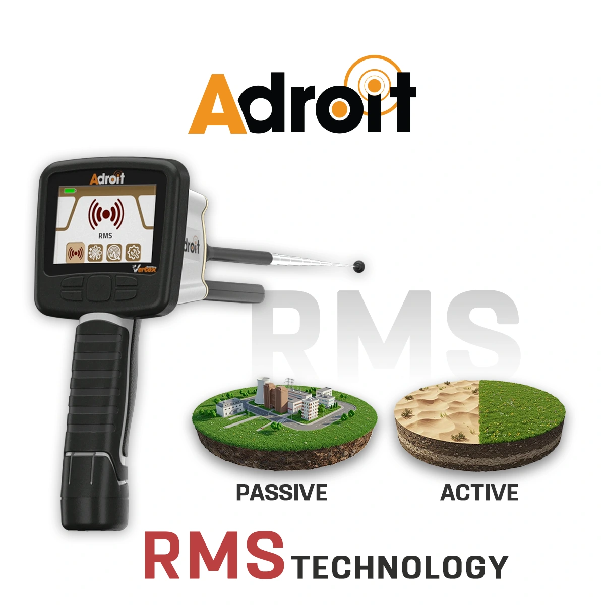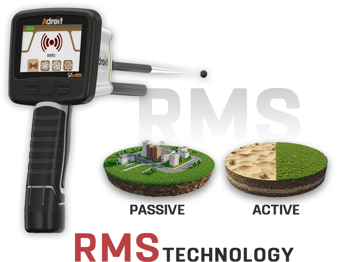 تعتمد تقنية RMS في جهاز Adroit على تحليل الطاقة الكهروستاتيكية الطبيعية المنبعثة من الأهداف تحت الأرض باستخدام خوارزميات رياضية دقيقة، ما يوفر للمستخدم بيانات موثوقة ومؤشرات دقيقة حتى في البيئات التي تعاني من تشويش أو تداخلات كهربائية.