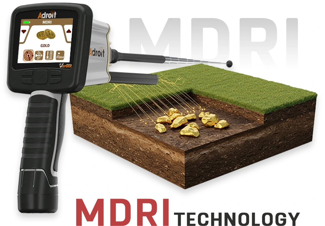 تعتمد تقنية ADRI في جهاز Adroit على مبدأ محاكاة الرنين الفيزيائي للمواد المستهدفة، حيث تقوم بتحفيز المجال الكهروستاتيكي بما يتناسب مع التردد الذري للمعدن المدفون، مما يوفّر قدرة فائقة على تمييز نوعية الهدف بدقة عالية.